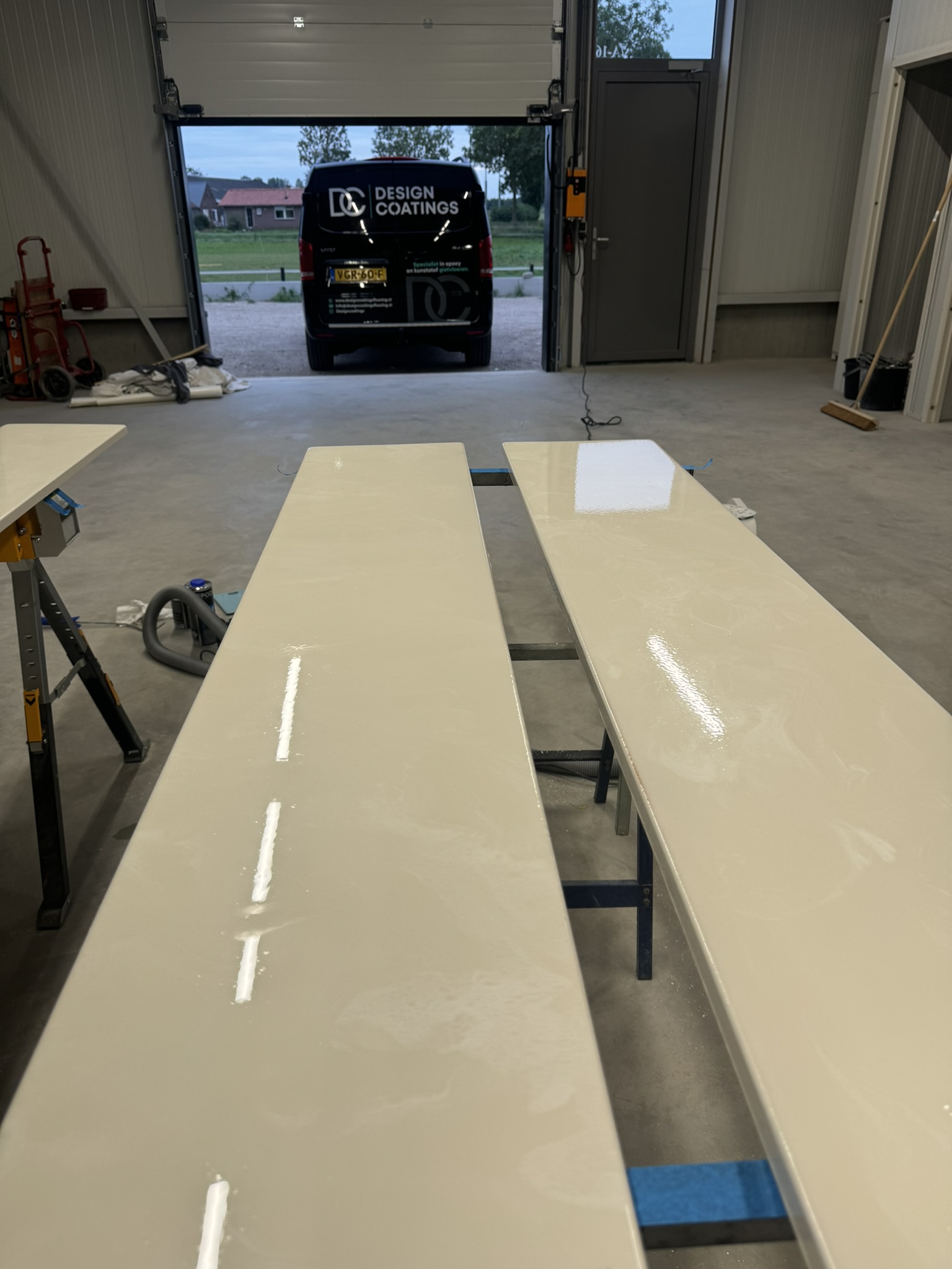 Epoxy coatings creëren een harde, duurzame afwerking die bestand is tegen krassen, vlekken en vocht. De unieke samenstelling zorgt voor een glanzend, glad oppervlak dat niet alleen visueel aantrekkelijk is, maar ook praktisch in gebruik. Net als met onze epoxy coatings zijn deze extreem sterk en kunnen tegen een stootje. Ze bieden een langdurige bescherming tegen dagelijks gebruik, waardoor je meubels er langer als nieuw uitzien.